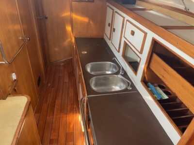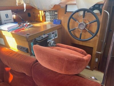Timonerie intérieure, salon de pont, puissante motorisation 60cv diesel, cockpit abrité, magnifique jupe arrière, 2 cabines doubles pour 7 couchages, parc batteries neuf(2025), gréement dormant remplacé (2017) …
